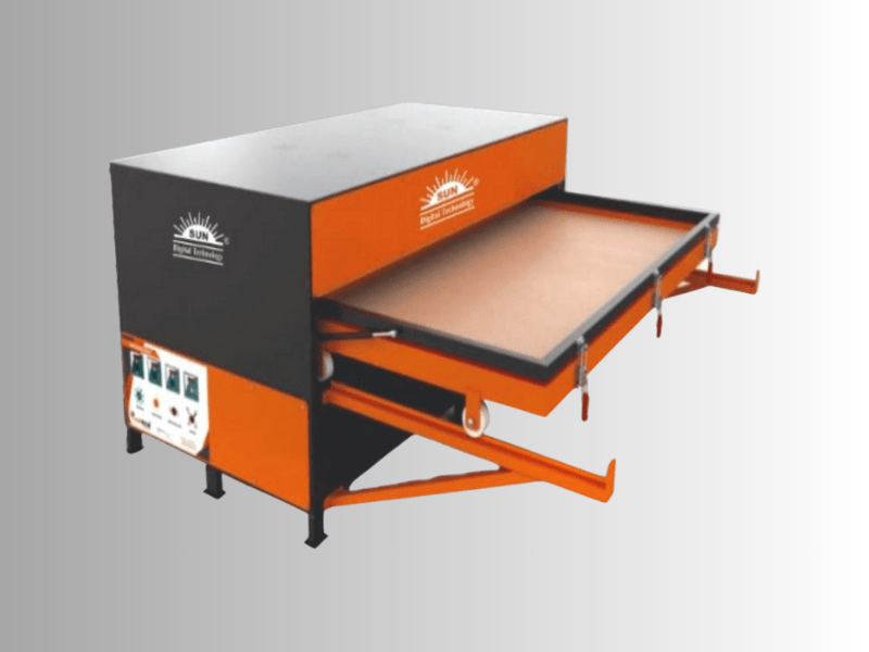 A Vacuum Membrane Press bonds laminates or veneers to surfaces using a vacuum for even, smooth adhesion.